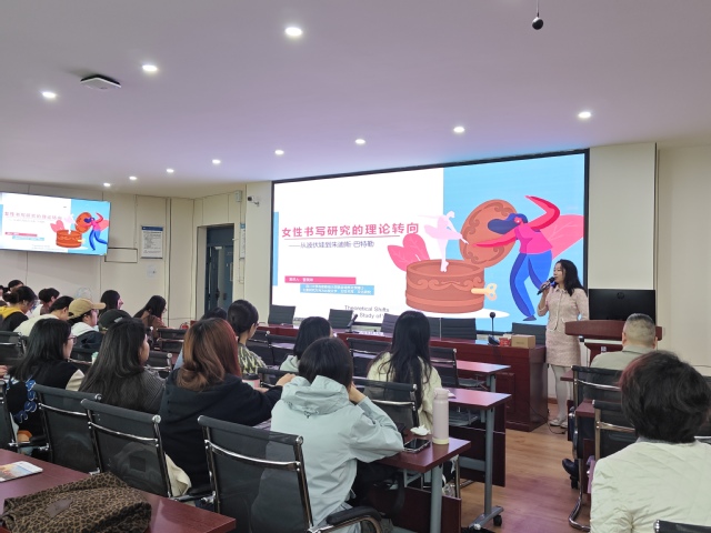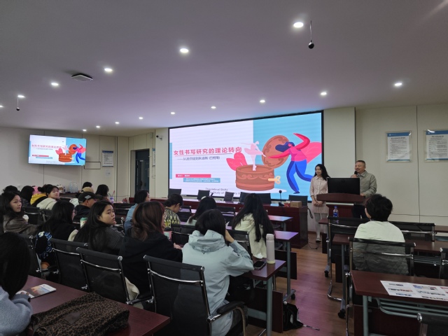 10 月 23 日下午,外国语学院在 4C-504 会议室举办了一场以“女性书写研究理论转向”的学术讲座。本次讲座由学院副院长叶林果主持,由我院曹美琳老师主讲,外国语学院部分师生到场聆听,共同探索女性书写领域的理论奥秘。
