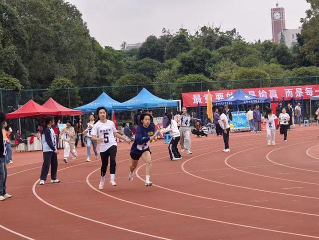 赛场上的拼搏精神也感染了教职工队伍。在紧张激烈的学生比赛之余,外国语学院的教师们踊跃参加了教职工趣味运动会。在“同心协力”接力、“趣味‘飞行器’竞赛”等趣味项目中,老师们全情投入,默契配合,赛场上充满了欢声笑语。他们用行动诠释了“快乐工作,健康生活”的理念,展现了课堂之外别样的活力与风采,其乐融融的场面极大地增强了学院的凝聚力,成为了运动会上一道温暖而亮丽的风景线。