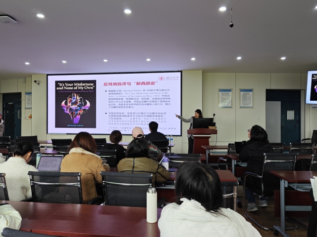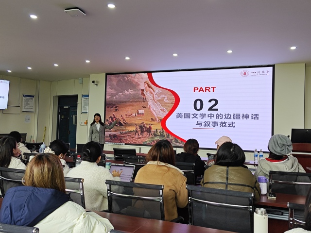 为深化对美国文化的理解,拓展英美文学研究视野,2025年11月13日,外国语学院于4C504会议室举办“美国边疆概念溯源及叙事范式演变”学术讲座。本次讲座由院长李国宏教授主持,特邀四川大学外国语学院院长、博士生导师王欣教授担任主讲,学院研究生及教师代表参会。