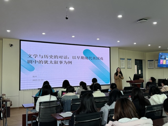 石兴老师聚焦于“文学与历史的对话”,以早期现代英国戏剧中的犹太形象为例,探讨文学如何参与历史建构与集体记忆的塑造。她从旧历史主义到新历史主义的理论转型入手,指出文学不再是历史的被动反映,而是主动参与意识形态的话语实践。通过分析戏剧中犹太人物被赋予的政治、宗教与经济焦虑,石兴老师揭示了文学在“他者”建构与社会规训中的复杂作用,为理解文学与历史关系提供了新视角。