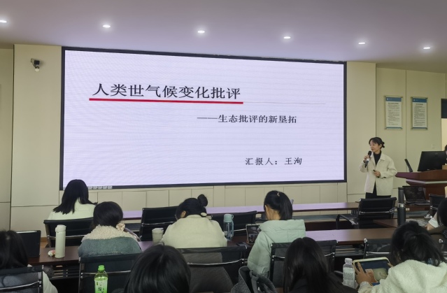 王洵老师则以“人类世气候变化批评”为主题,介绍了生态批评领域的最新动向。她指出,在全球变暖成为人类生存核心危机的背景下,气候变化批评试图超越自然科学框架,从文化与文学层面探寻生态危机的根源与应对策略。王洵老师强调,这一新兴研究方向不仅关注自然生态,也涉及社会结构与精神世界的重建,呼吁青年学者积极参与到地球未来的思考与行动中。