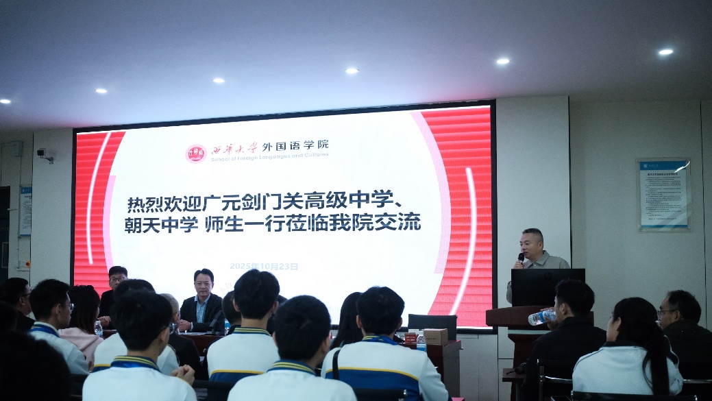 2025年10月23日,西华大学外国语学院举办“走进西华·启航未来”主题交流活动,迎接广元剑门关高级中学师生代表团的到访。活动在学院4C-504会议室举行,围绕“中学与大学协同育人”展开交流。