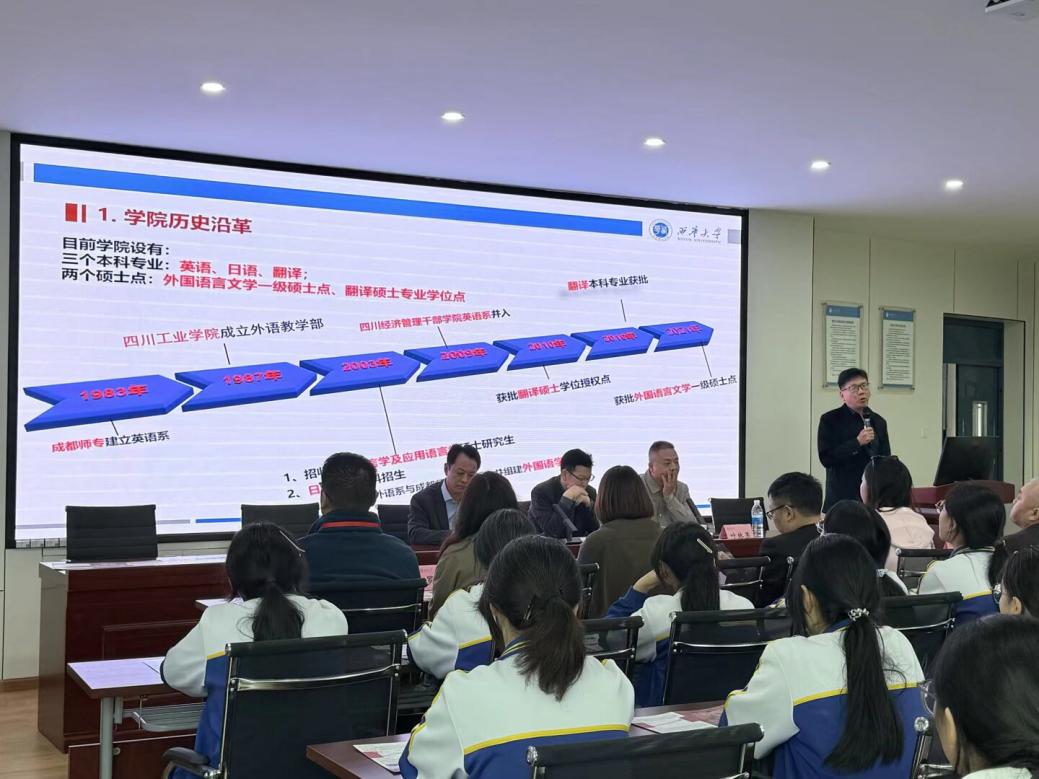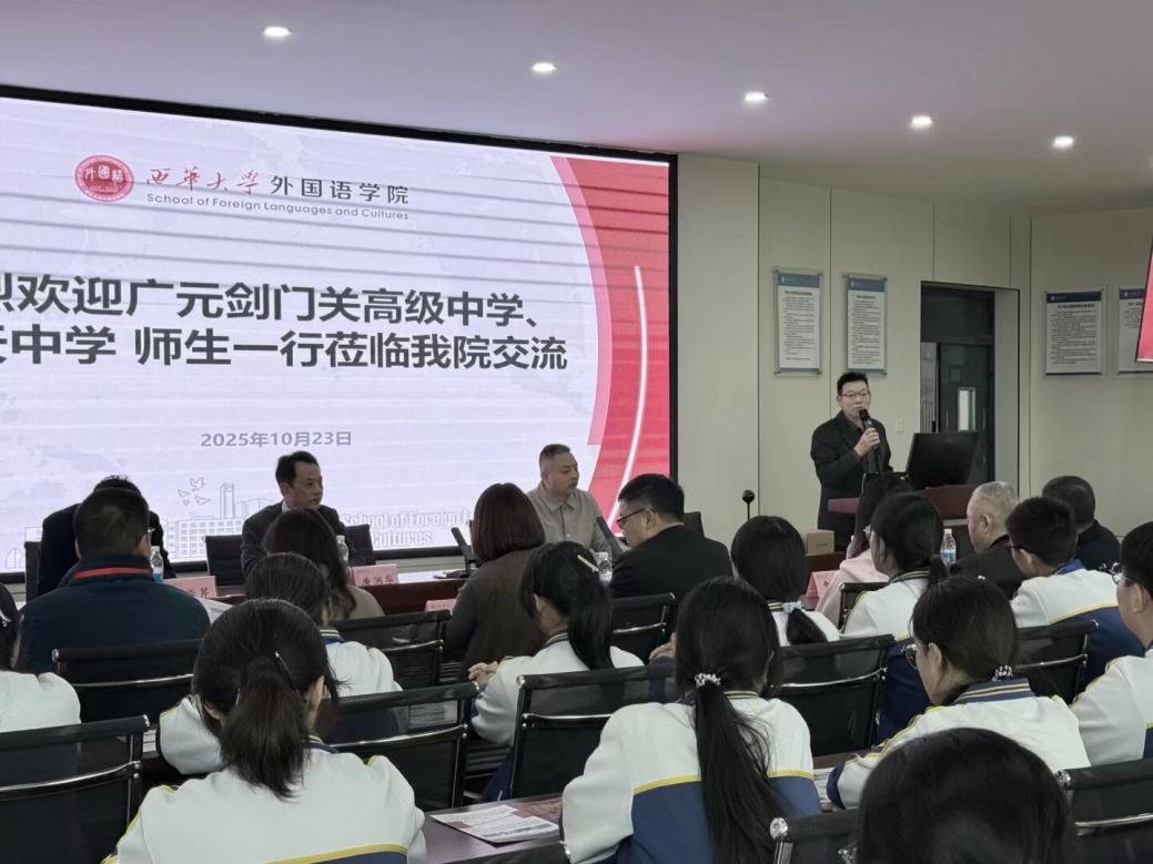 2025年10月23日,西华大学外国语学院举办“走进西华·启航未来”主题交流活动,迎接朝天中学的师生代表团。本次活动旨在加强中学与大学的教育衔接,特别是通过课堂观摩环节,让中学生亲身体验大学外语专业的教学氛围