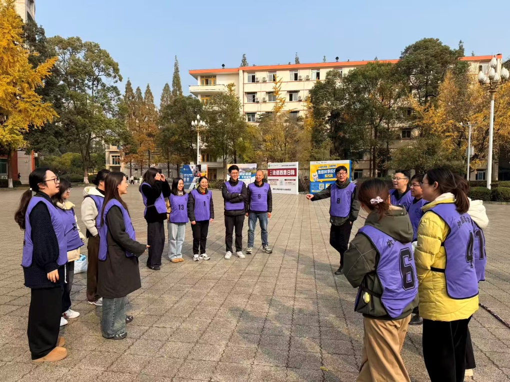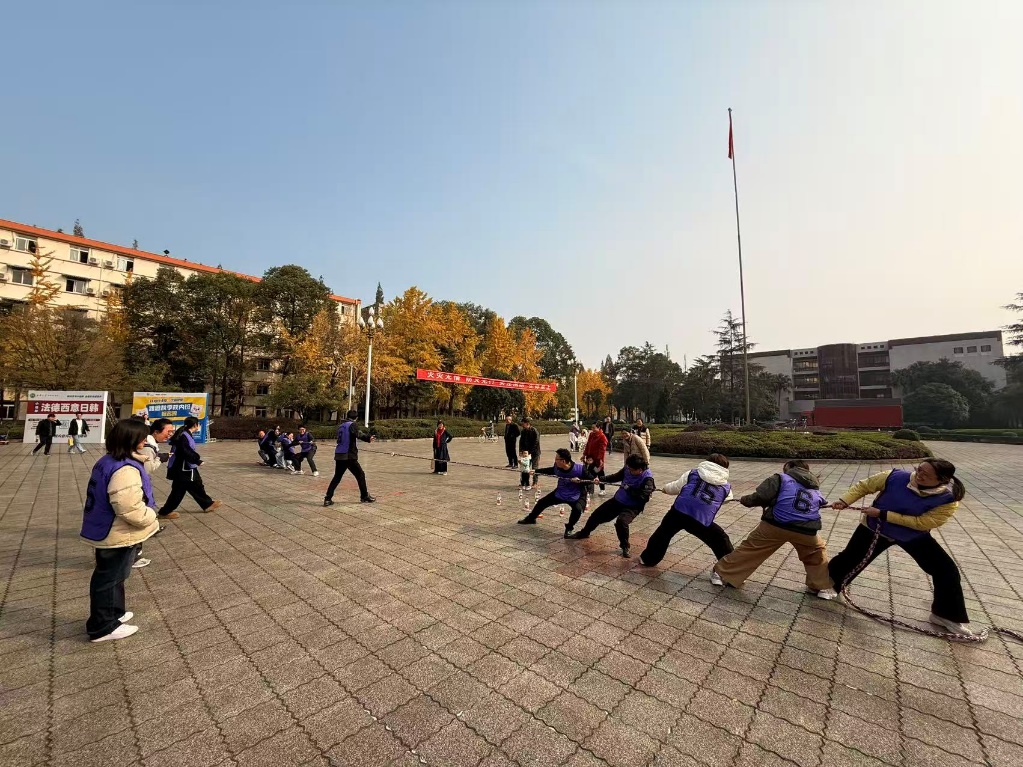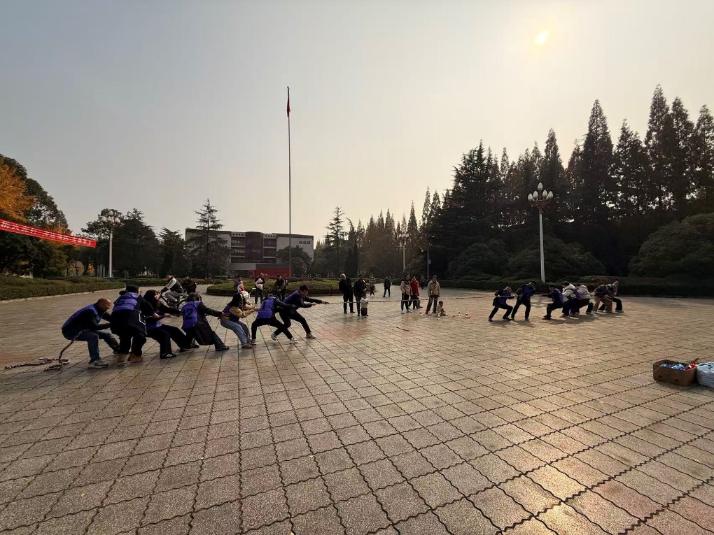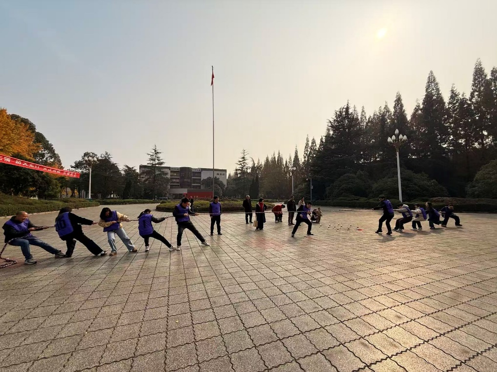 2025 年 11 月 19 日下午,外国语学院行政人员拔河比赛在明德广场热闹开赛,全体行政人员齐聚赛场,以饱满的热情投入这场充满力量与协作的竞技盛宴。