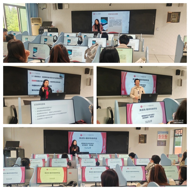 2025年10月23日下午,西华大学外国语学院英语系、翻译系在郫都校区4B406教室召开系部教研例会,宜宾校区教师线上同步参会。本次教研活动由英语系系主任梁勇老师主持,会议内容主要有:政治理论学习、课程进展交流、实践课安排、教学规范、商务类外贸软件培训。