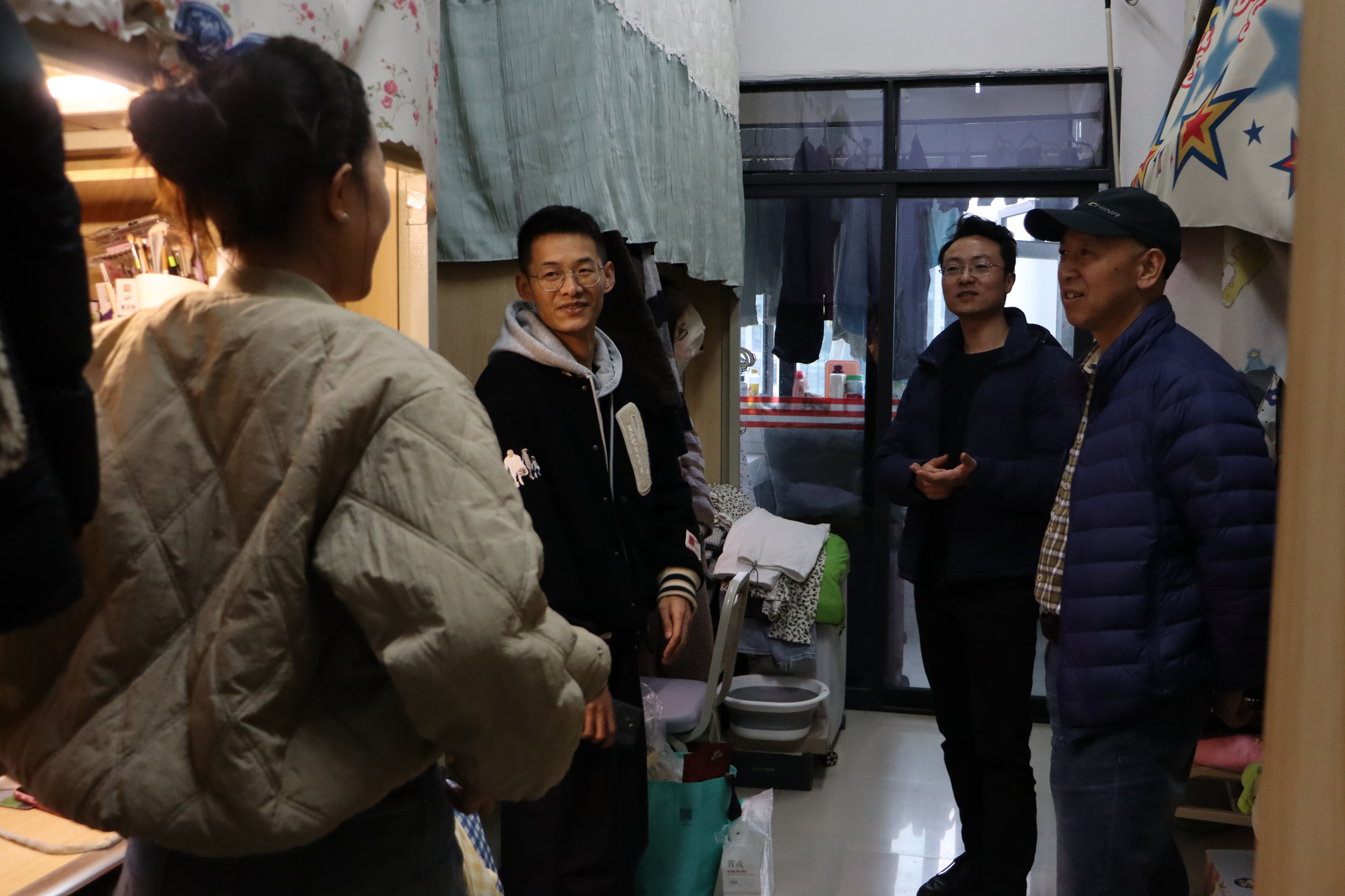 走访过程中,学院领导与老师逐一走进各间宿舍,仔细查看宿舍环境卫生、设施使用情况,亲切询问同学们的日常生活起居、饮食作息及适应状态。在与同学们的深入交流中,老师们细致了解大家在专业学习、课程进展、学术实践等方面的具体情况,认真倾听同学们在学习生活中遇到的困难与诉求,对大家关心的问题逐一进行解答和指导。