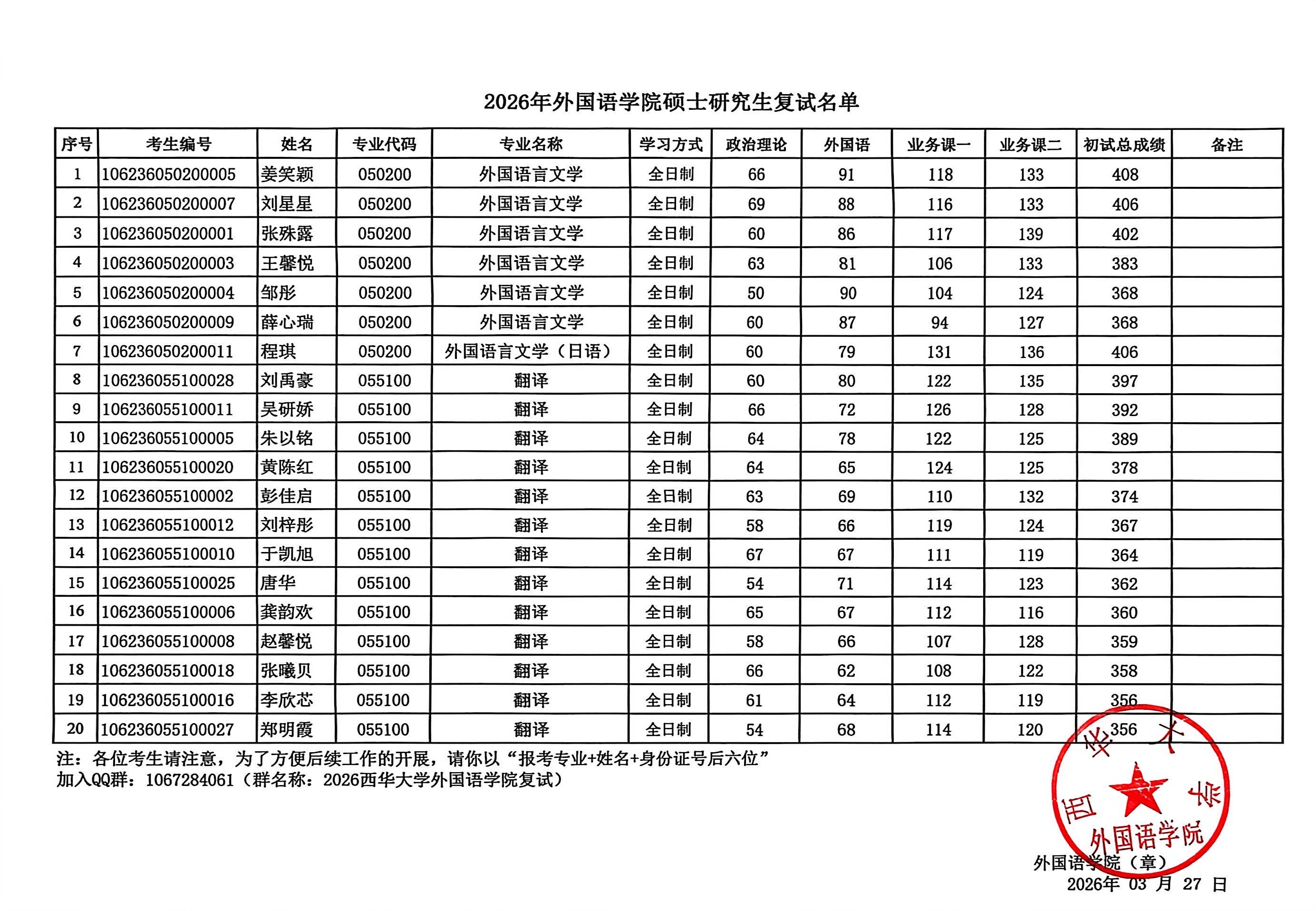 西华大学外国语学院2026年硕士研究生招生一志愿复试通知.pdf